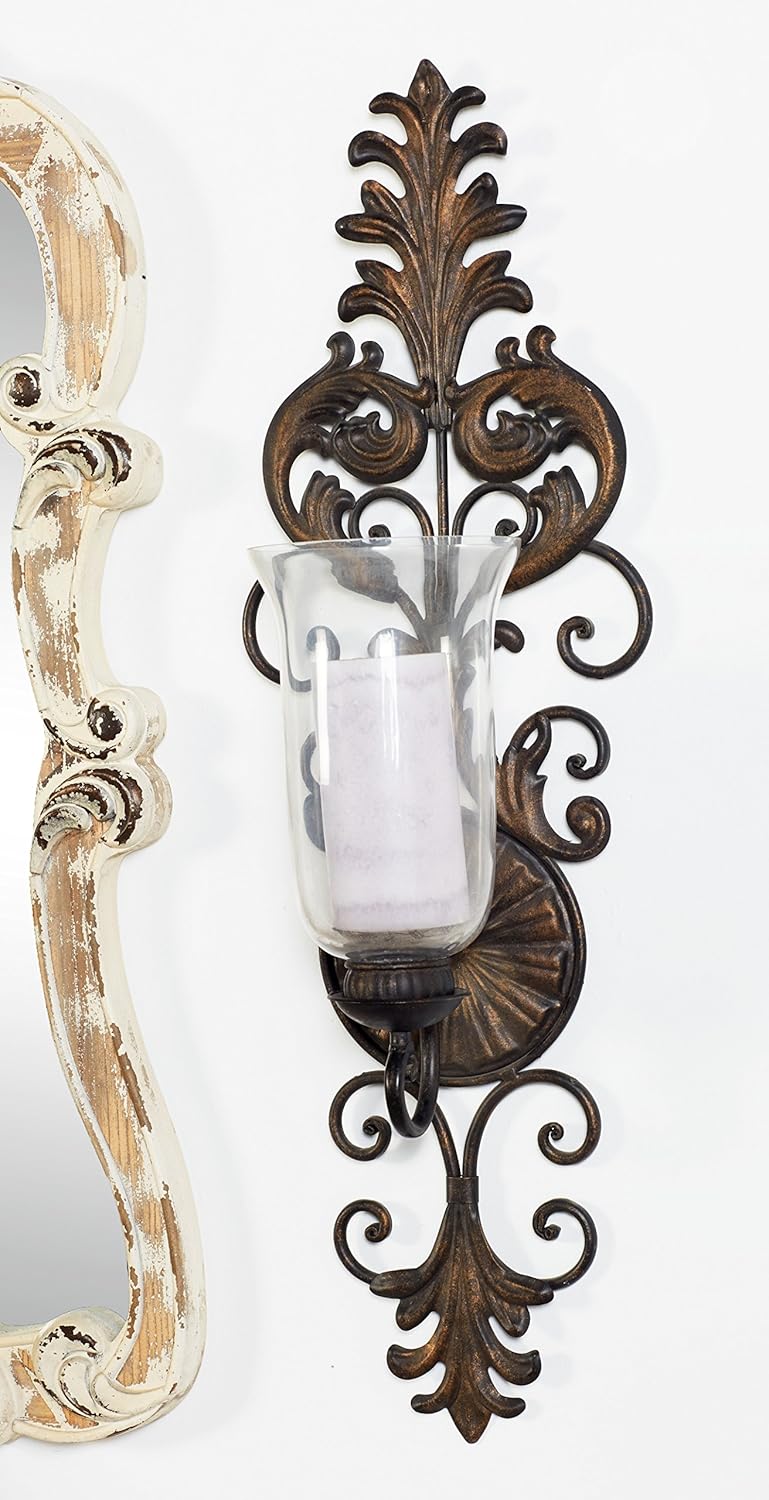 Glass Wall Candle Holders : Ready To Mount Wall Candle Holder Sconces Crackle Glass Scrolled Metal Bronze : Read reviews for mercury glass votive holders by ashland® élégance™.