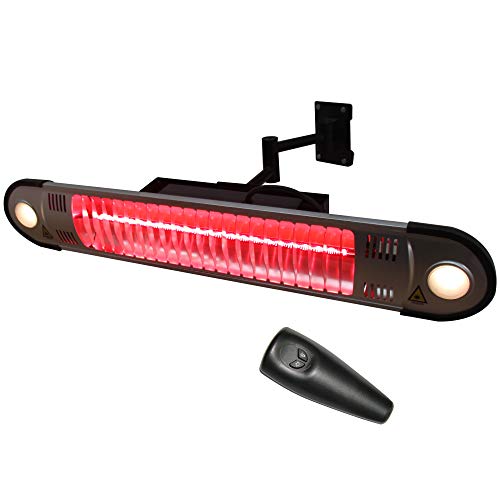 Kuton electric patio heater, outdoor heater w/remote, wall mounted infrared heater, ip65 waterproof outdoor heater, 3 power setting. 3 heat levels offer adjustable comfort. Wall mounted infrared patio heater on the site are made of materials that are very durable and can help these products last for longer years with their efficiency. The heaters directly warm people close to the heater and the mounting brackets are adjustable so that the heat can be directed where you want it. Compared with traditional heaters, our heater we had a roaring fire in our patio fireplace that we had to sit directly in front of not to freeze.